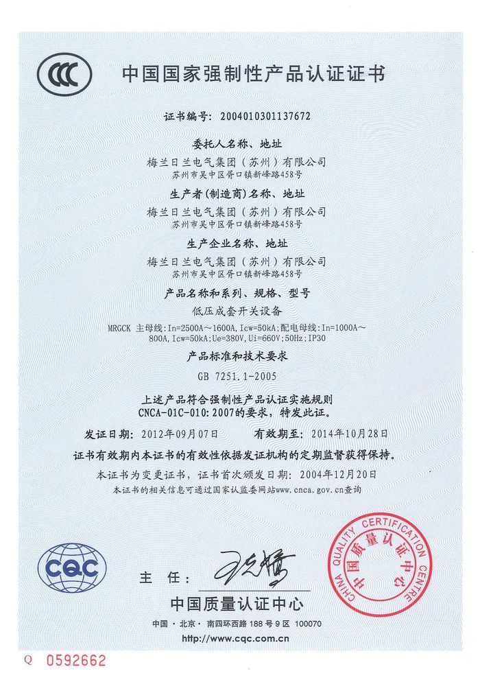 (成套)MRGCK主母線資質(zhì)證書(shū)