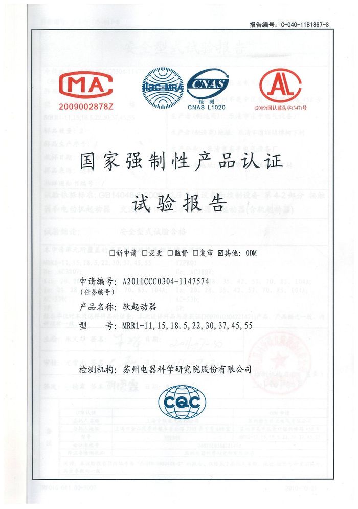 MRR1-11軟啟動(dòng)資質(zhì)證書