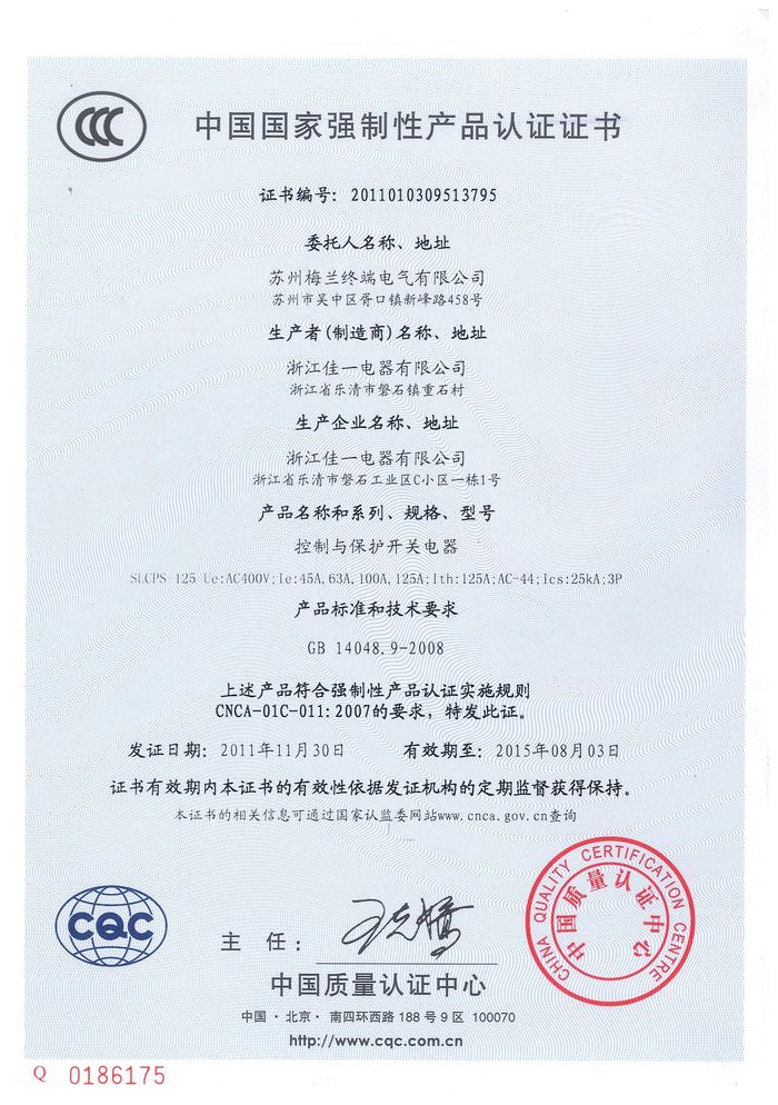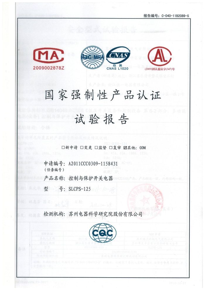 SLCPS-125控制與保護開關資質(zhì)證書