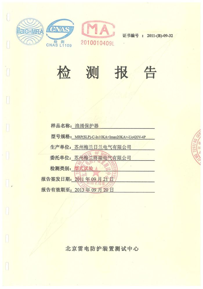浪涌 MRP10KA資質(zhì)證書(shū)