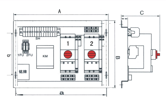 電磁傳動機主要由控制線圈、鐵心、控制觸點及基座等組成(類似接觸器的電磁控制系統(tǒng),具有欠電壓保護功能),能接受通斷操作指令,控制主電路接觸組中的主觸頭接通或分斷主電路。線圈的接線端子標示為A1、A2。