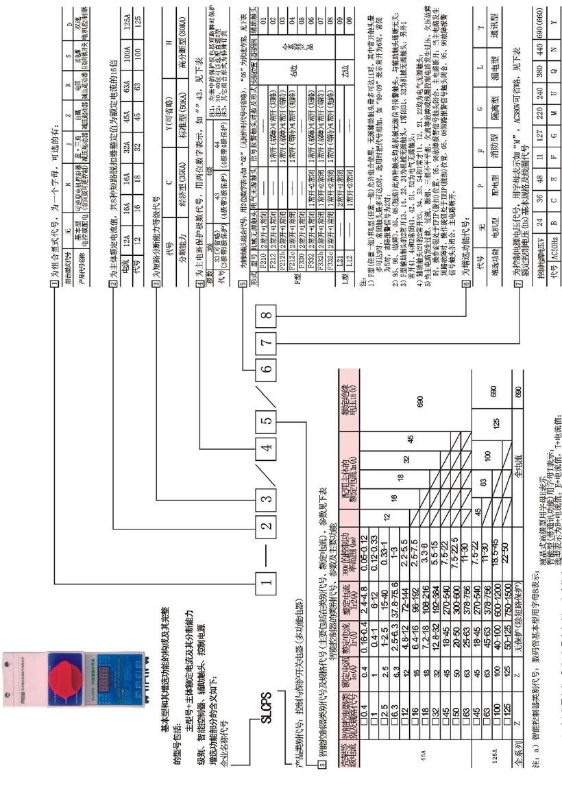 例二:訂SL購CPS-N-45C/33E40/06ML表示出SLCPS可逆型產(chǎn)品、分斷能力35KA、主體脫扣器額定電流45A、三級帶三極保護、液晶式智能控制器額定電流40A、3常開2常閉+1短路1故障輔助觸頭、線圈控制電源電壓220V,帶漏電功能。