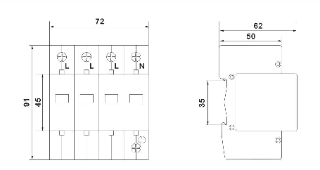 采用35mm的標(biāo)準(zhǔn)導(dǎo)軌安裝,連接銅質(zhì)導(dǎo)線為2.5~16mrf12。