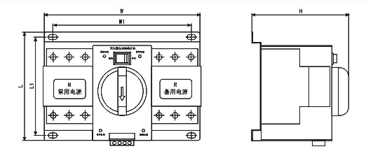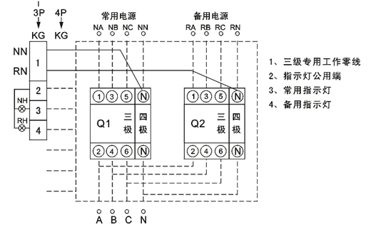 開關(guān)工作有三個(gè)狀態(tài)位置供用戶選擇:常用電源(N)合、雙分、備用電源(R】合,開關(guān)具
