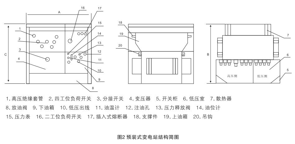 YB27系列預(yù)裝式變電站,適用于10kV環(huán)網(wǎng)供電、雙電源供電或終端供電系統(tǒng)中,作為變電、配電、計量、補(bǔ)償、控制和保護(hù)裝置。預(yù)裝式變電站內(nèi)除裝有變壓器外,高壓側(cè)還裝有四工位負(fù)荷開關(guān)、二工位負(fù)荷開關(guān)、后備保護(hù)熔斷器及插入式熔斷器;低壓側(cè)按用戶要求可裝控制電器、配電電器、補(bǔ)償裝置及計量表計等,以變壓器油作為絕緣和來弧介質(zhì)。